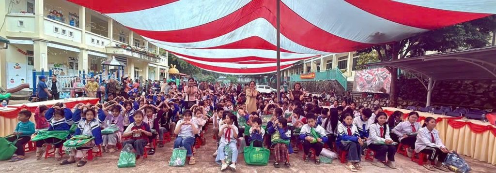 Sau khi đến với Trường Nguyễn Huệ – Cao Bằng, nơi gần 400 em học sinh từ Mầm non, Tiểu học đến THCS bán trú đang từng ngày nỗ lực đến trường, hành trình yêu thương ấy đã được nối dài về miền đất biên viễn Thanh Hoá – Trường Tam Chung.